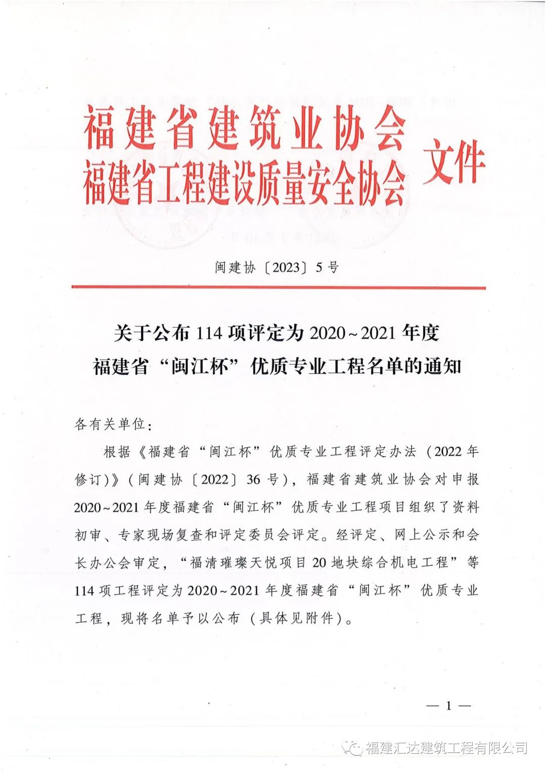 乐鱼online(中国)承建的城发·福郡智能化项目喜获“闽江杯”优质专业工程